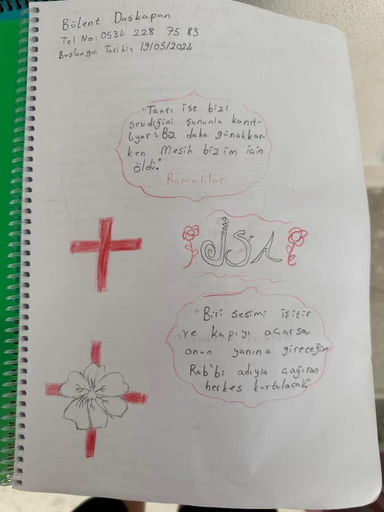 Bugün Antakya Mesihçiler Kilisesi’nin kitaplığında yer alan onlarca defter, bu sessiz ama derin hizmetin hem birer hatırası hem de yeni başlangıçların şahidi olarak duruyor. Sayfalarına bakıldığında, büyük bir işin izlerinin orada gizli olduğu hemen fark ediliyor. Tam 366 kadın, İncil’i baştan sona kendi elleriyle bu defterlere yazdı. Çoğu Hristiyan değildi. Ama Tanrı’nın Sözü’nü merak ettiler. Okumakla yetinmediler; yazmaya başladılar. Ve bir kez başladıktan sonra bu süreci durdurmak neredeyse imkânsız oldu…